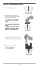 CHOPPING BLADE 1. Place the chopping blade into center of the work bowl over metal blade shaft. 2. Place the motor body housing with cover on top of the work bowl and rotate counterclockwise to lock into place. 3. Plug the power cord of the hand blender into an electrical outlet. WHISK ATTACHMENT 1. Align the motor body housing with the assembled whisk attachment and push the pieces together until you hear and feel them click together. It may be helpful to press the release button when assembling.