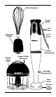 ASSEMBLY BLENDING ATTACHMENT 1. Align the motor body with the blending attachment and slide the pieces together until you hear and feel the pieces click together. It may be helpful to press the release button when assembling. CHOPPER/GRINDER ATTACHMENT J A. Chopper/Grinder Prep Bowl H I B E G A C F D B. Cover Slots (3) for Attaching Cover C. Metal Blade Assembly Shaft D. Rubber Feet E. Blade Assembly F. Blade Ring G. Plastic Blade Sheath H. Chopper/Grinder Cover I. Lift Tabs J.