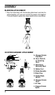 REVERSIBLE BLADE The Cuisinart® Smart Stick® Hand Blender chopper/grinder attachment is equipped with a reversible blade. This blade is sharp on one side and blunt on the other. The blade is attached to a plastic ring which slides over the blade assembly shaft, so it can be easily turned over to select the appropriate blade. A guide for proper blade selection follows in the section, Frequent Uses for Chopper/Grinder (page 15.) Before you process any food, assemble the parts. 1.