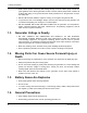 12-2008 3.6 3. Starting and Running the Generator Set Charging Batteries To reduce arcing, always stop the generator set before connecting or disconnecting the battery to be charged. Connect the battery to be charged to the DC terminals on the control panel. Make sure polarity is correct: positive (+) to positive (+); negative (–) to negative (–). WARNING: Ignition of explosive battery gases can cause severe personal injury or death. Acring at battery terminals can ignite batterey gases.