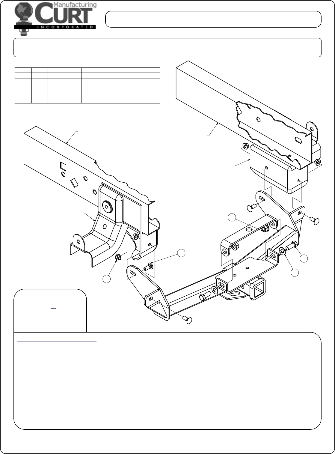 Curt Manufacturing Inc., may repair or replace the product, at their option, when the product is returned, prepaid, with proof of purchase. Alteration to, misuse of, or improper installation of