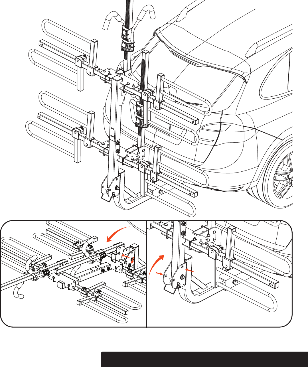 the whole rack up until it is parallel to your vehicle. Replace the security pins to hold in place. See Detail S.