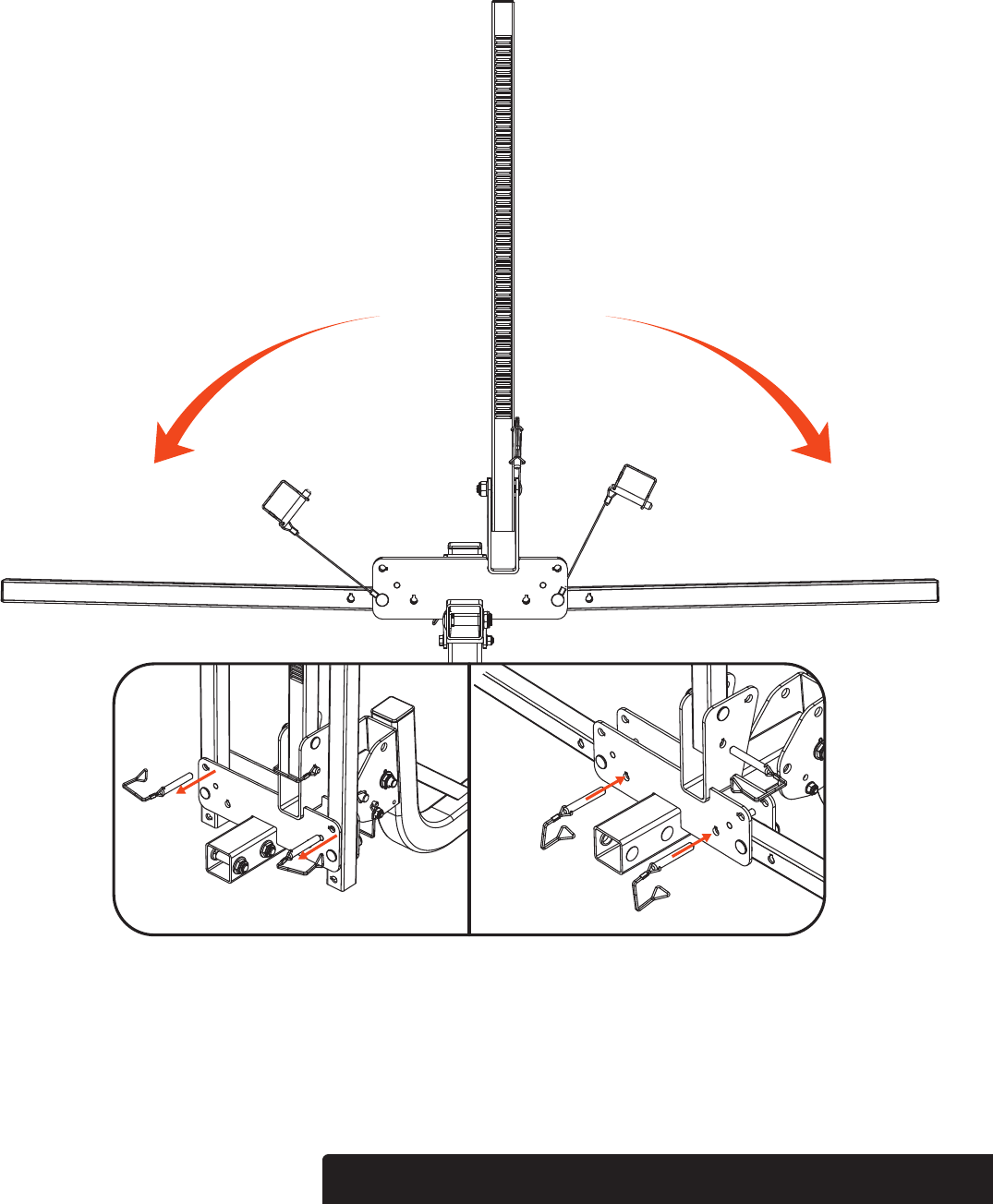 Remove the outer arm pins & clips from main body rack (#1). See Figure 2, Detail D. Drop the side arms