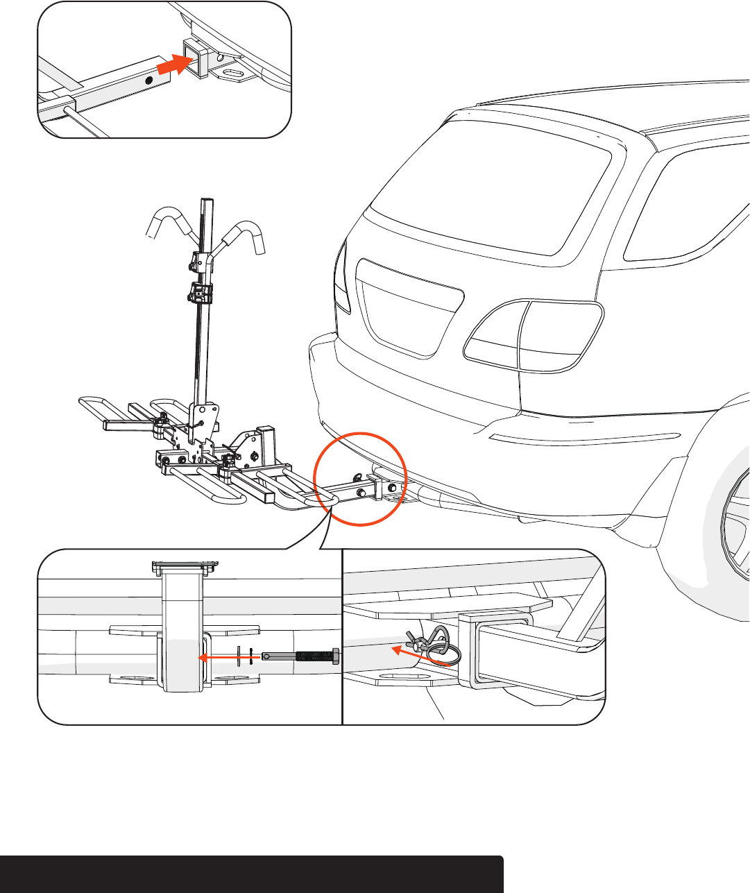 To install your bike rack on your vehicle, slide the shank into your receiver hitch tube opening