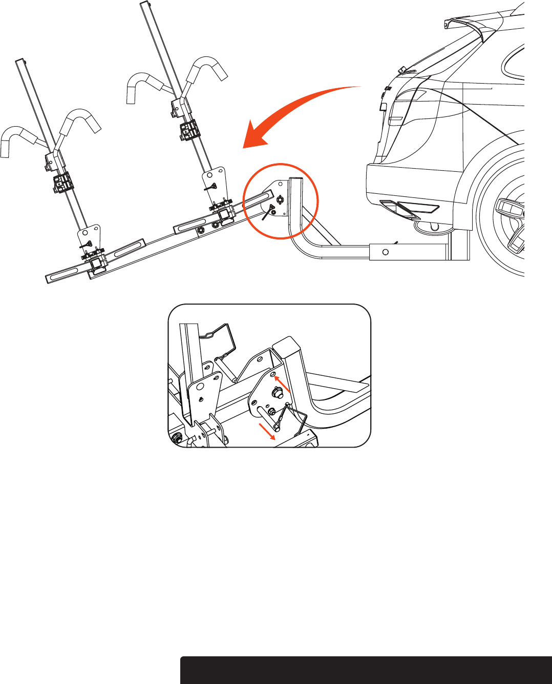 Remove the security pins from the base of the bike rack and replace them in the top hole of the base plate so the carrier