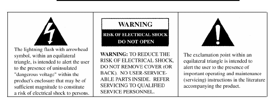 WARNING: TO AVOID THE RISK OF ELECTRICAL SHOCK, ALWAYS MAKE SURE THE
