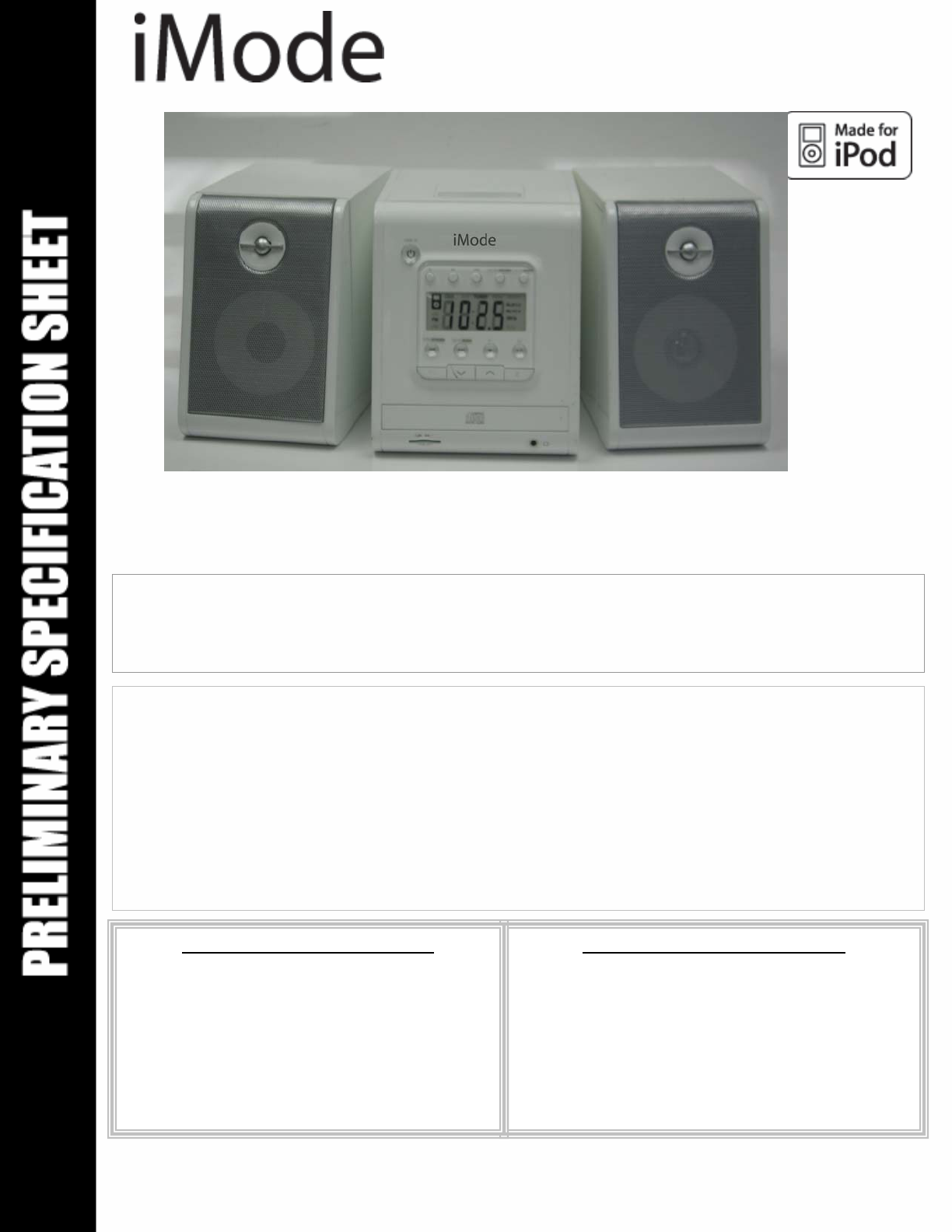 International CD Microsystem with Docking Station for Ipod Specification Sheet