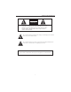 SAFETY AND WARNINGS CAUTION RISK OF ELECTRIC SHOCK DO NOT OPEN! CAUTION TO REDUCE THE RISK OF ELECTRIC SHOCK, DO NOT REMOVE COVER (OR BACK).NO USER SERVICEABLE PARTS INSIDE. REFER SERVICING TO QUALIFIED SERVICE PERSONNEL. The symbol indicates that dangerous voltages constituting a risk of electric shock are present within this unit. The symbol indicates that there are important operating and maintenance instructions in the literature accompanying this unit.