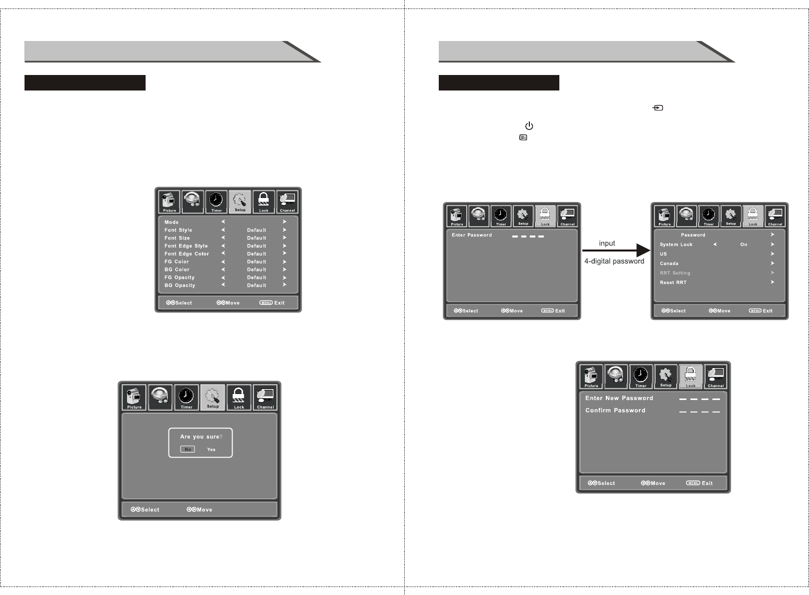 If you turn off the system lock, then the following items(US, Canada, RRT Setting