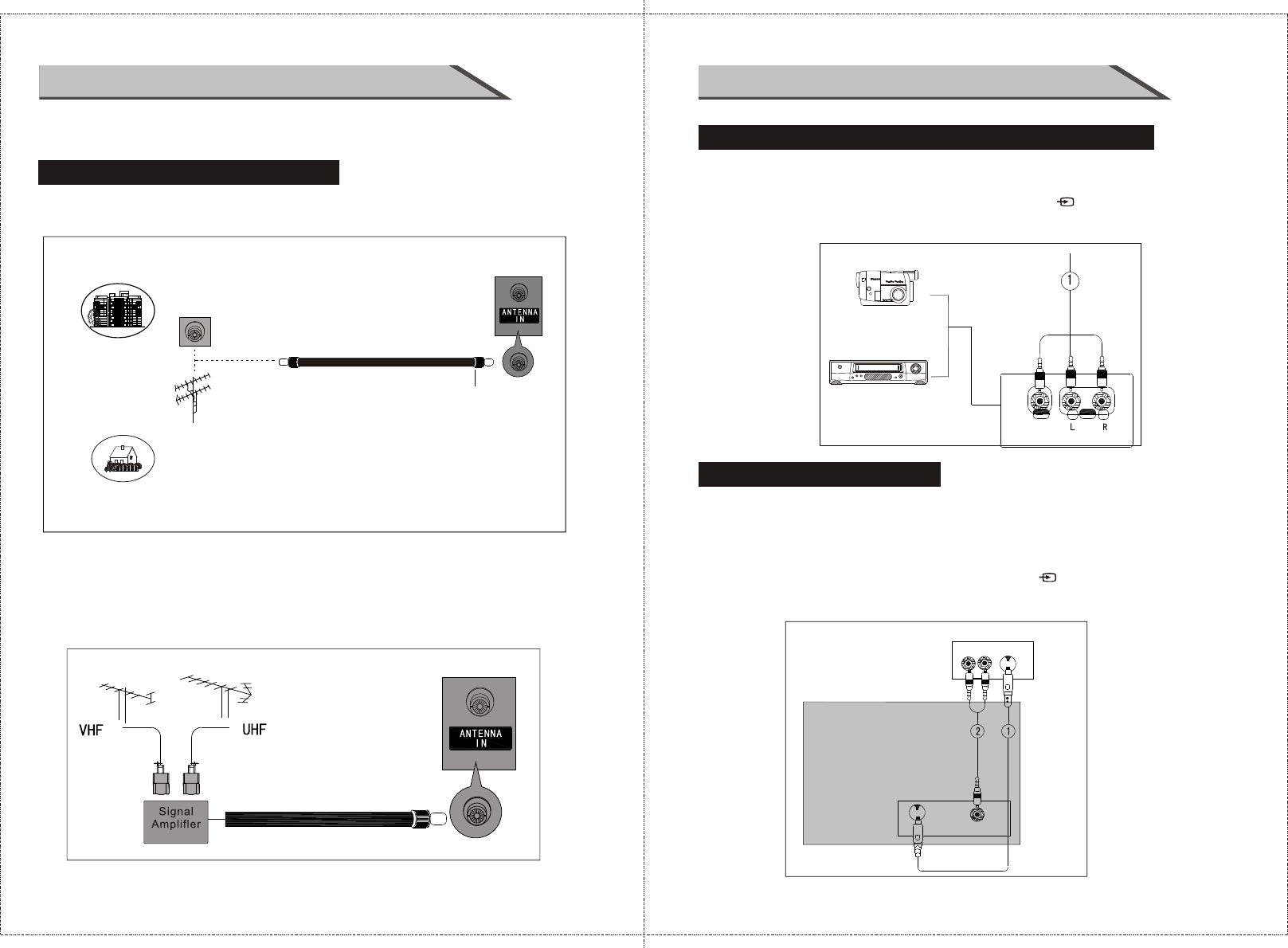 1. Connecter l'AV prises entre la télévision et un équipement externe. Mettre en accord les
