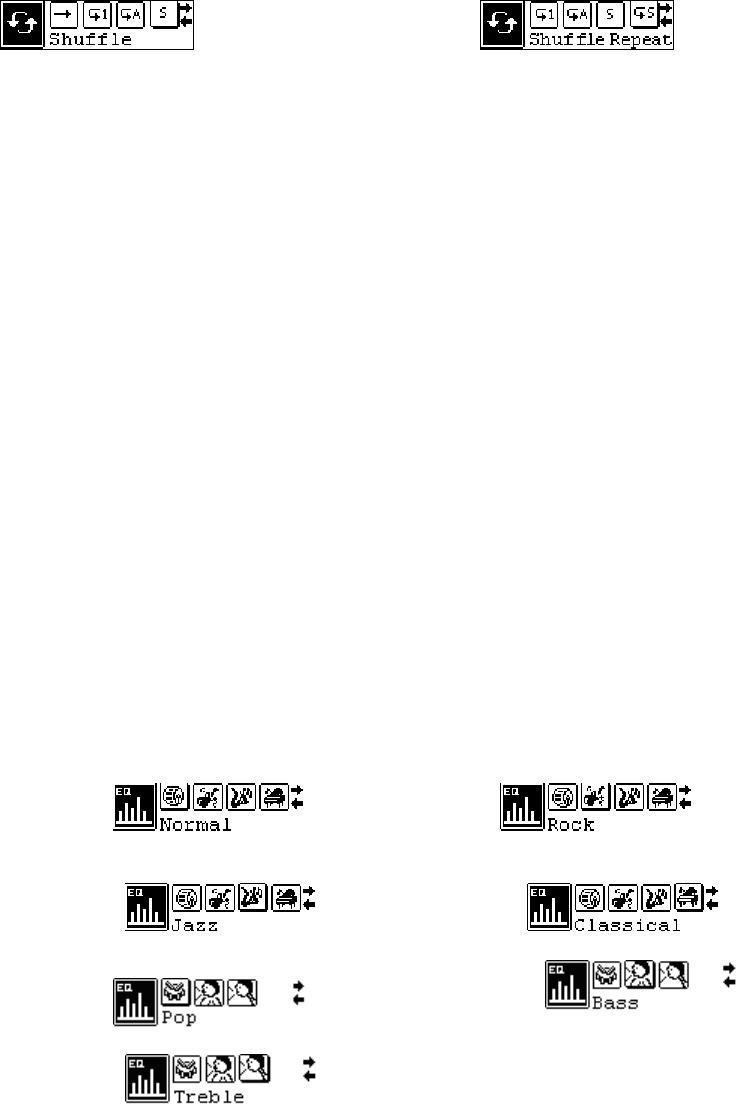 Press the MENU button to enter the EQ mode setting, and press the or button to select EQ mode: