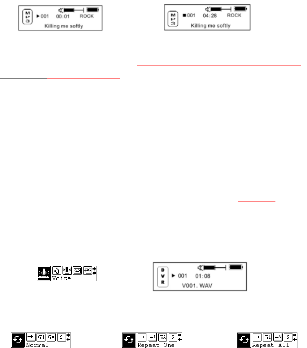 b. Voice play mode including: Normal, repeat one, repeat all and shuffle, shuffle repeat.