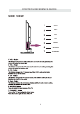 English CONTENTS 1 SAFETY PRECAUTION 1 2 IMPORTANT SAFETY INSTRUCTION 2 3 ACCESSORIES 3 4 GETTING STARTED 3 5 CONTROL REFERENCE GUIDE Remote Control Front View Back View Side View Antenna Connection AV Connection YPbPr Connection HDMI Connection VGA Connection Headphone Connection Power Cord Connection Coax(SPDIF) Connection 4 5 5 6 7 7 8 8 9 9 9 10 6 CONNECTIONS 7 WALL MOUNT INSTALLATION 8 INITIAL SETUP Putting The Unit On A Proper Place Source Selection Turning The Unit On For The
