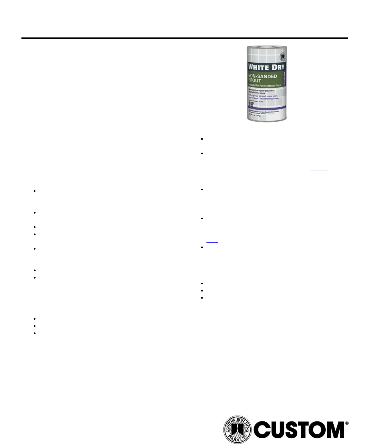 White Dry Non-Sanded Grout is formulated for grouting porous floor