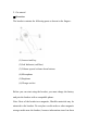 2. Get started ■Overview The headset contains the following parts as shown in the fingure: (1)Answer/end key. (2)Led Indicator (red/blue) (3)Volume up and volume down buttons (4)Microphone (5)Earphone (6)Charger socket Before you can start using the headset, you must charge the battery and pair the headset with a compatible phone. Note: Parts of the headset are magnetic, Metallic materials may be attracted to the headset .
