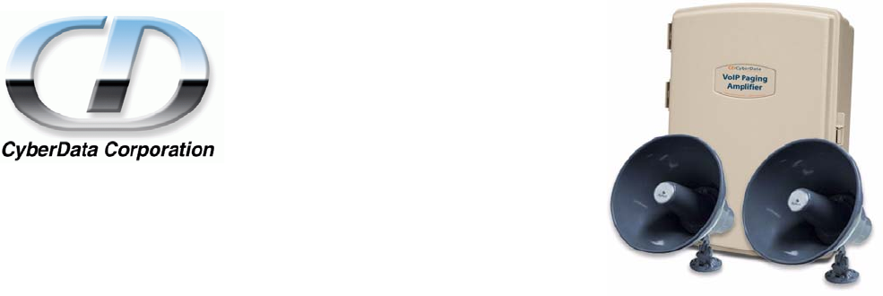 VoIP Loudspeaker Amplifier Operations Guide 930106B Part # 010861 COPYRIGHT NOTICE: © 2007, CyberData Corporation, ALL RIGHTS RESERVED. This manual and related materials are the copyrighted property of CyberData Corporation. No part of this manual or related materials may be reproduced or transmitted, in any form or by any means (except for internal use by licensed customers), without prior express written permission of CyberData Corporation.