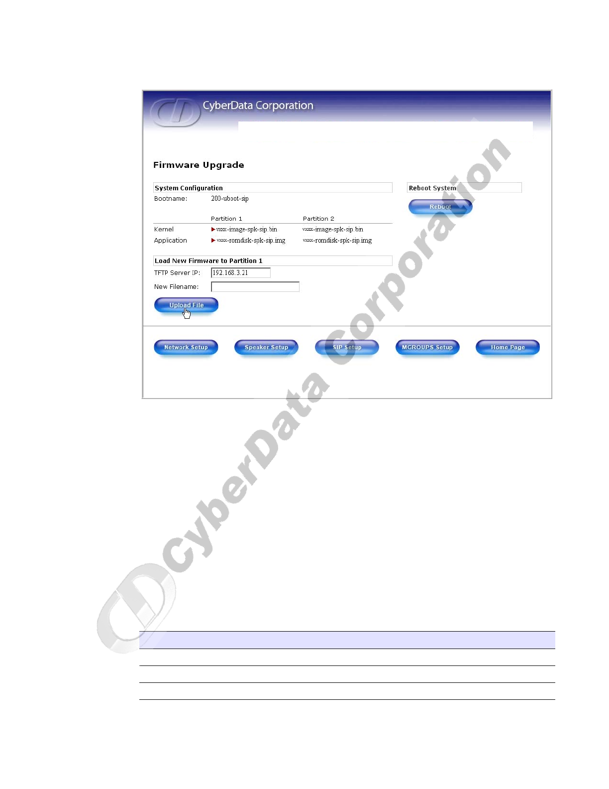 finishes, the Firmware Upgrade page will refresh. The uploaded firmware filename should