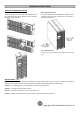 HARDWARE INSTALLATION VERTICAL/TOWER INSTALLATION Step 1: Rotate the Multifunction LCD Module Step 2: Attach the base stands Unscrew the right panel of the UPS. Separate the right panel from the UPS. Gently lift the LCD module out. Rotate it to the tower orientation. Reinstall it for a tower configuration. Secure the tie bracket with the screws (M5X8*4pcs). Tighten the screws (M5X12*4pcs) of the base stands (rackmount ears) onto the bottom of the UPS and the Battery pack.