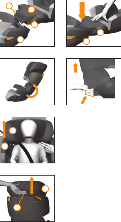 – Trek de afstelhendel (h) omhoog om de schouder- en hoofdsteun te