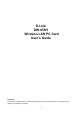 D-Link DW-655H Wireless LAN PC Card User’s Guide CAUTION: Any changes or modifications not expressly approved by the grantee of this device could void the user's authority to operate the equipment.