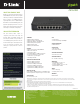 data. Supporting IEEE 802.3, 802.3u, 802.1p, and 802.3ab standards, this 8-port Gigabit Switch is compatible with 10BASE-T, 100BASE-TX, and 1000BASE-T networks and devices.