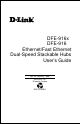 0 ABOUT THIS G UIDE This guide discusses how to install and use the D-Link DFE-916 series dual-speed stackable Ethernet/Fast Ethernet hubs. Conventions As used in this manual, the expression "DFE-916 series" includes both the DFE-916 and the DFE-916x. Unless a specific model number is given, the term "hub" (or "hubs") refers to any unit (or units) in this series. Most of the information in this manual applies to all DFE-916 and DFE916x units.
