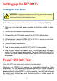Setting up the DP-301P+ Installing the Print Server WARNING: Configuration problems may result if the print server is powered up without first establishing its network connection. Follow this procedure to avoid complications at the configuration stage. 1. Confirm proper operation of the printers to be connected to the DP-301P+. 2. When you have confirmed proper operation of the printer, switch its power OFF. 3. Confirm that your network is operating normally. 4.