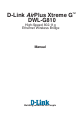 Troubleshooting (continued) 3. Why doesn’t the Power LED light up? Check to see if the DWL-G810 power adapter is connected properly to a known good power outlet. 4. Why doesn’t the Link LED light up? Make sure that the Ethernet cable is connected properly. Make sure the AC power adapter is plugged in properly. For advanced setup features, enter http://192.168.0.30 into your Internet browser and gain access to the web configuration of the DWL-G810.
