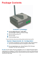 Contents Package Contents ................................................................................3 Introduction............................................................................................4 Wireless Basics ....................................................................................6 Getting Started ......................................................................................9 Web Configuration ..........................................................................