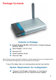 Technical Specifications (continued) Security: ! ! ! 64-, 128-, 152-WEP WPA -Wi-Fi Protected Access (64-, 128, 152-WEP with TKIP, MIC, IV Expansion, Shared Key Authentication) Supports Advanced Encryption Standard (AES) Media Access Control: ! CSMA/CA with ACK Wireless Frequency Range: ! 2.400GHz to 2.500GHz ! 5.150GHz to 5.