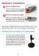 Hardware Installation Connect an Ethernet cable Connect an Ethernet cable to the network cable connector located on the DCS-3220’s back panel and attach it to the network. Attach the external power supply Attach the external power supply to the DC power input connector located on the DCS-3220’s back panel labeled 12VDC and connect the other end to your wall outlet. When you have a proper connection, the LED will turn from red to green.