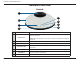 Section 1: Product Overview Internal Ports You can access the inside of the DCS‑6010L by rotating the camera cover counter-clockwise, then lifting it off of the camera. Caution: When removing the cover, remove it slowly to avoid disconnecting the microphone. 1 Ethernet Cable 2 Power Cable D-Link DCS-6010L User Manual Pre-attached Ethernet cable. Pre-attached power cable.