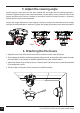 5. Adjust the viewing angle Loosen the pan screw and turn the lens module left and right until the desired position is achieved. Tighten the pan screw once completed. Loosen the tilt screws on both sides of the camera and then turn the lens module up and down until the desired position is achieved. Tighten the tilt screws once completed. Loosen the image adjustment screw and turn the lens to adjust the network camera’s image until the desired orientation is achieved.