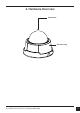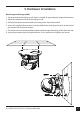 3. Hardware Installation Mounting to a Ceiling or a Wall 1. Locate an area on the ceiling or wall which is suitable of supporting the weight of the camera. 2. Attach the alignment stencil to the ceiling or wall. 3. Drill two pilot holes where the holes of the alignment stencil are located. 4. Insert the supplied plastic anchors into the drilled holes, and align the holes at the base of the camera with the plastic anchors. 5.
