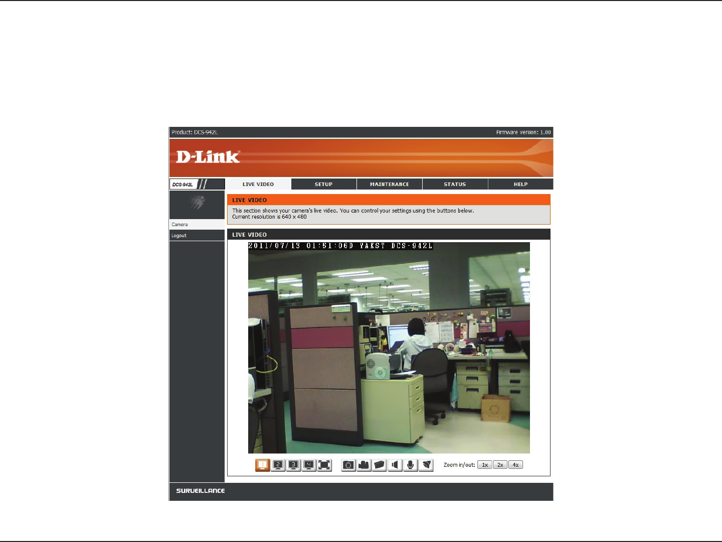Eine Live-Videoeinspeisung der Kamera wird beim Anmelden auf der Web-Benutzeroberäche der Kamera angezeigt.