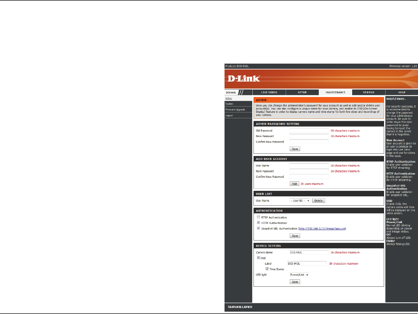 In diesem Abschnitt können Sie das Administrator-Kennwort ändern und die Servereinstellungen für Ihre Kamera kongurieren. Außerdem können