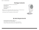 Section 1 - Product Overview Product PackageOverview Contents • • • • • • DCS-932L Wireless N Day/Night Home Network Camera CAT5 Ethernet Cable Power Adapter Manual and Software on CD Quick Install Guide Mounting Kit Note: Using a power supply with a different voltage than the one included with your product will cause damage and void the warranty for this product. If any of the above items are missing, please contact your reseller.