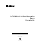10/100 Auto Negotiation Switch User’s Guide About This Guide This section defines the scope of this guide and gives a summary of the contents of each chapter. It describes the features of the D-Link DES-3224 10/100 Auto Negotiation Switch. Information about the DES-3224 and other D-Link products is available on our web site at www.dlink.com. Audience This user guide is intended for the networking or computer technician who is installing the DES-3224 on a network.