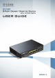 1 Product Introduction 1 D-Link Web Smart Switch User Manual Product Introduction The DGS-1008P Switch provides 8 Gigabit Ethernet ports, of which 4 ports supporting Power over Ethernet (PoE) for PoE applications such as wireless Access Points (APs), IP cameras, and IP phones, and the other 4 ports without PoE for computers, printers and Network Attached Storage (NAS) onto a network. With wirespeed Gigabit capacity, DGS-1008P provides non-blocking switching for both home and office environment.