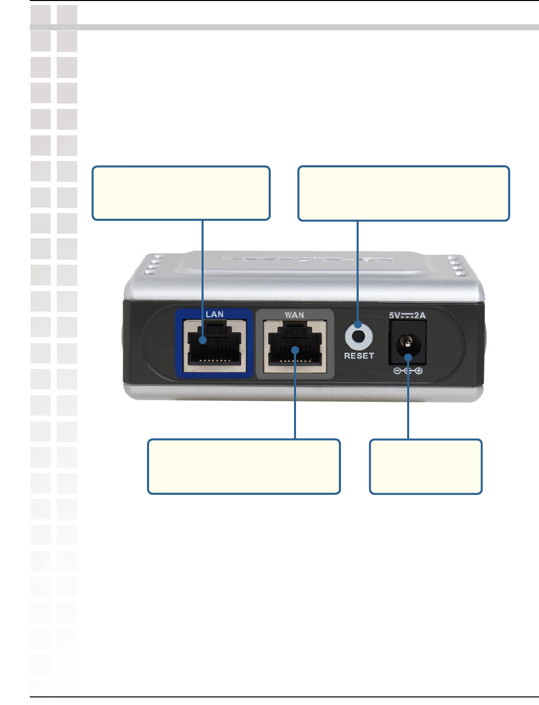 Connects to the WAN port of