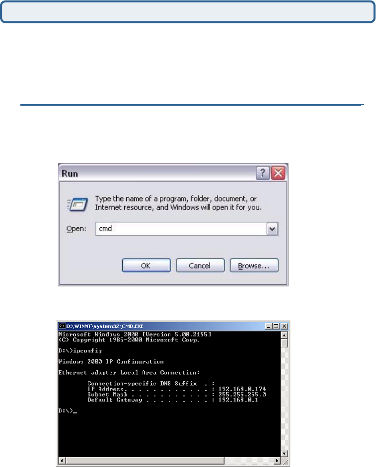 Step 3 From the Command Prompt, enter ipconfig. It will return your IP