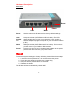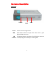 Hardware Description Front Panel Power Power WAN LAN Power indicator will light Green. WAN WAN status indicator will light Green when there is good physical WAN connection. LAN Link/Act. Link status indicators light Green. The LED flickers when the corresponding port is sending or receiving data.