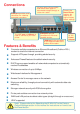 Connections COM port provides serial connection for a backup analog dial-up modem. The LPT port or USB port is used to connect to your local printer. All ports (both LAN and WAN) auto-sense cable types to accomodate straight-through or cross-over cable. Pressing the Reset Button restores the router to its original factory default settings. LAN ports provide connections to Ethernetenabled devices. Features & Benefits WAN port is the connection for the Ethernet cable to the Cable or DSL modem.