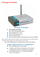 Contents Package Contents ................................................................................3 Introduction............................................................................................4 Wireless Basics ....................................................................................8 Getting Started .................................................................................... 11 Using the Configuration Menu..............................................................