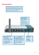 LEDs WAN LED A solid light indicates connection on the WAN port. This LED blinks during data transmission POWER LED A solid light indicates a proper connection to the power supply WLAN LED A solid light indicates that the wireless segment is ready. This LED blinks during wireless data transmission STATUS A blinking light indicates that the DI-524 is ready LOCAL NETWORK LED A solid light indicates a connection to an Ethernet-enabled computer on ports 14.
