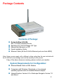 Contents Package Contents................................................................................. 3 Introduction............................................................................................ 4 Wireless Basics..................................................................................... 8 Getting Started.....................................................................................11 Using the Configuration Menu.............................................................