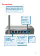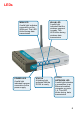LEDs WAN LED A solid light indicates connection on the WAN port. This LED blinks during data transmission POWER LED A solid light indicates a proper connection to the power supply STATUS A blinking light indicates that the DI-524 is ready WLAN LED A solid light indicates that the wireless segment is ready. This LED blinks during wireless data transmission LOCAL NETWORK LED A solid light indicates a connection to an Ethernet-enabled computer on ports 1-4.