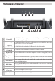 Hardware Overview 1 5 2 3 6 4 7 8 9 10 11 1 Power LED A solid light indicates a proper connection to the power supply. The light will be a solid orange during boot up. 2 Internet LED A solid light indicates connection on the Internet port. If the LED is orange, the router cannot connect to the Internet. 3 Wireless (2.4 GHz) LED A solid light indicates that the 2.4 GHz wireless band is enabled. 4 Wireless (5 GHz) LED A solid light indicates that the 5 GHz wireless band is enabled.