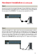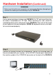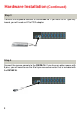 Hardware Installation (Continued) Step 11 Now power up all computers simultaneously. The first computer will be shown on the monitor. You may check to see if the mouse, keyboard, and monitor work after the computer has booted up. If this is OK, use the “Select” button to choose the next computer and verify the functionality in the same manner. If you find errors, recheck all cables for proper connections before going to the trouble-shooting section of this manual. Note: Please do not switch the PC ports (i.
