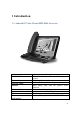 1 Introduction 1.1 Android IP Video Phone DPH-850S Overview Item DPH-850S Phone Description DPH-850S IP Video Phone with display and keypad. Power supply for telephone. Power Adapter Used to access network for the phone. Network Cable Make phone calls with the phone’s basic Handset functions. Connected with the handset and the phone. Handset Cord Quick Installation Guide Quick install the DPH-850S guide. Containing manual and quick installation guide.